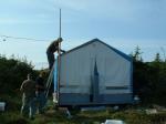 With a Newfoundland moose hunt coming up in September I decided to use Bill's arrows again. This time I picked a set of maple shafts he had finished, but never fletched. I shortened the shafts (Bill was 6'10" and drew close to 30") and sanded them. Stained them all white and fletched them with 4 4" white feathers ("white as a ghost"). I chose Bill's Zwickey heads to go on the shafts. The weight of the finished arrow was around 600gr. Good medicine for moose I thought. The bow I picked was an old Elburg Jaguar Magnum (in my opinion, the best bow ever built) 64" 64#@28" (about 55# at my draw). Back up bow was another Elburg Jaguar Magnum 64" 53#@25", T/D model.