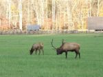 That is the old settlers farm at the information center on the NC side of the Great Smoky Mtns, just outside of Cherokee. These are part of the free ranging heard, they were grazing in an open field next to the road. The lady at the info center said they reintroduced elk to the area in 2001, the orange tag in the ear indicates he was from one of the early releases. There were nine cows and calves with this bull, one of the cows had a collar.