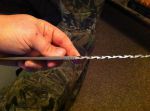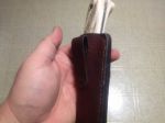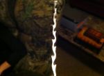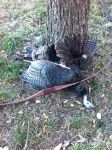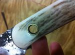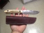 Well, I finished up the blade and made a sheath for it. Ended up using moose billet for the handle and the 3/8" hollow pins. It turned out better than expected. I gave it to Tom Kidwell for having me down to hunt with him and he loved it. Unfortunately Tom fell ill after just one day of scouting and an evening hunt and was sick the entire time I was down...I did however harvest my first traditional turkeyon that first day hunting!! Turkey flocks down there are ridiculous ( 50-100). And the great thing about Oklahoma is the fall turkey season is October through the end of December for archery!! I did see one VERY large boar that was about 300 lbs. but I could not get him in close enough for a shot. Hunting down there is truly an experience of its own.