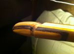 Not yet John, I figure if with all then crap that is going on with ammo I'd better stock up on bows and arrows! Might try to pick up a piece of beaver tail leather from big Jim at trad fest to stitch a grip on. Just got one of the tip overlays done tonight. Still have a little tweaking to do on them (straighten the lines) and a final sanding before clear goes on.