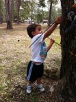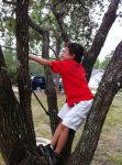 Here he is shooting from a tree and his kid brother retrieves his 2 arrows for him.