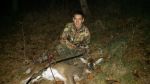 Number 2 doe for Drew. Steep downward shot about 10 yards from his tree. Muzzy/Eichler head went in the rib cage and exited between her front legs. Lots of damage but very little blood as the exit wound was blocked with jellied lung material and who knows what else. We bumped her out of her bed and then backed out for 2.5 hours. Found small amounts of blood every 15 to 20 feet, but stayed on her. We had to re-group several times, make some small circles to hit the blood trail again, but we finally found her tucked in another bed up in the tops of a downed ash tree, dead in her bed. Proud of the kid, made a good shot, but even more proud that he made the move to back out and give her time and proud that he was dogged enough to stick it out when the trail got tough.