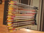 Happened to be talking with an older lady who is widowed. Topic of archery came up and low and behold, she made me a deal on some items she'd had collecting dust in her spare room. Not the mother load but a pretty good haul. 40+ wood arrows, 7 or 8 Tru Flight 2117 Gold Stalkers, 5 2216 Papes Bark Brown XX75, Southland blanket back quive, nock, some NOS Rocky Mtn, Satellite and Thunderhead broadheads, some Zwickey's, turkey calls, grunt tube, fish reel, bow square and a 50# right hand Howatt Hunter. I'm stocked up on trade material for the 2 day shoot!