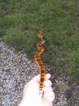 I recently finished up a few new bows.  The first one is snakey osage with coral snake skins.  A friend of mine did most of the bow work.  It opened a side crack as he was shooting it in.  He filled it with superglue and gave up on the bow.  He gave it to me since I have a shorter draw length.  I sinew wrapped the crack and it shoots fine.  I traded for the coral skins 3 years ago.  I've been saving them for something special.  They were really old and had moth holes in them.  The skins wouldn't flex around the bends in the wood so I had to cut and splice them at every curve.