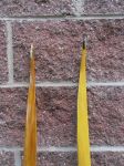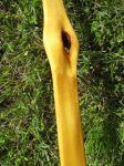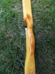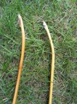 These two bows are for a trade with a couple of friends that I camp with at the Tennessee Classic.  The darker bow is full of lead pellets.  It looks like it took a shot from a rabbit hunter several years before it was cut.  I pulled a few lead pellets out of the belly as I was thinning the limbs.  In one of the knots on the back you can see a pellet lodged in the wood.  I tried to get a picture of it.