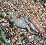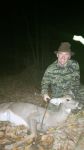 Our annual KTBA LBL deer hunt turned out to be hot all week, just like last year. Acorns plentiful, deer scarce. Did find several scrapes, and missed a doe checking one one evening, two days latter and no more deer sited from the stand. After walking miles, climbing steep hills carrying treestand and gear, I was about done. Down in the back, tired, discouraged, Heading out on the last evening I almost stayed at camp. Ibuprofen and beating myself up was all that got me to go along. So we parked at a field, beside the road, and a pond. A place I know gets heavy hunting pressure, I climbed a tree not 80 yards from the truck. I can actually SEE the truck. Not my kind of hunting , but at least I was out there. This spot showed signs of lots of traffic, but due to pressure I figured all nocturnal. within an hour a button buck strolls right up to within 15 yards. I was not about to pass on the shot. It was high, and a tad back,but managed to get lung and he went down just out of sight, maybe 60 yards away.