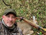 Shot this young doe this afternoon. 15 yards 100 yard recovery. 160grn STOS head, gold tip arrow and 48# longbow. JerryB asked if I wiped the milk off its chin before I shot it! Hope everyone is having a good season so far.